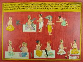 | Description / विवरण | Miniature painting based on Mahabharat - Ashwamegh parva depicting Bharat saying about fame and says that fame is necessity for a king and they have to do anything for their name and fame. Then he narrates the story of king Shivi, Karna, sage Dadhichi and their deeds which created their fame. |