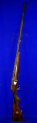| Description / विवरण | Single barrel Kartoosi gun having bolt and incised check pattern on the butt. It is rusted. |