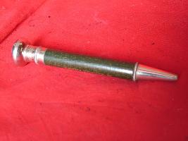 | Description / विवरण | It is a coloured pencil. It has a conical tip and a circular three diamentional block. The whole body is of wood covered with green enamel. The metal used for the bottom is brass having silver polish. JOHANN FABER has been written in golden colour on the pencil. |