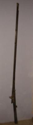 | Description / विवरण | Long, single barrel flint lock Pathredar gun with simple wooden butt. |