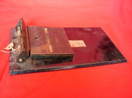 | Description / विवरण | It is a table calander with a horizontal base joined with a rectangular box. The base colour is yellow having black figures 1,2,3,4 written on it. On a long narrow strip name of the weeks has been written. |