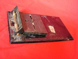 | Description / विवरण | It is a table calander with a horizontal base joined with a rectangular box. The base colour is yellow having black figures 1,2,3,4 written on it. On a long narrow strip name of the weeks has been written. |