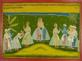 | Description / विवरण | Miniature painting based on Mahabharat - Ashwamegh parva depicting Shalya telling Brishketu about the meeting of other four Pandavas with Yudhisthir after a long interval. |
