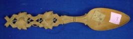 | Description / विवरण | Wooden spoon with carvings of floral designs on handle. |