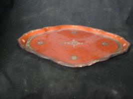 | Description / विवरण | Tray, decorated in silver, gold and red. |