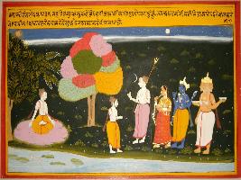 | Description / विवरण | Miniature painting based on Kashi khand depicting Mahadev asking Shukracharya to learn Sanjivani Vidya and Shine like sun, moon. Vishnu, Brahma, and Parvati is also seen with Shiv. |