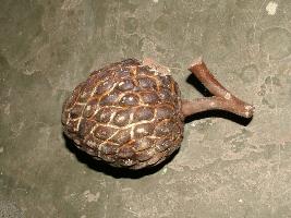 | Description / विवरण | It is a model of a sharifa shown along with a thick stem, so carved out, giving a texture in deep ochre colour. |