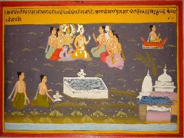 | Description / विवरण | Miniature painting based on Kashi khand depicting scene of worshipping Shiv on Tuesday. The painting says that by worshipping on the Tuesday anybody can achieve the blessings of Navagraha and receive place at Mangal lok. |