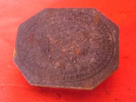 | Description / विवरण | It is an octagonal inscribed block with shallow negative impression letters are arranged in a circular pattern encircling the BRITISH ROYAL MONOGRAM; VICTORIAN. It is having slightly projected knob and a handle on the opposite side. |