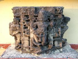 | Description / विवरण | This is a sculpture depicts god yama Or Shiva in pratyalidha. He is flanked by lady attendants. Carved in both side his legs and arms are broken and shown with jatamukuta and moustaches and beards. |