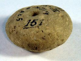 | Description / विवरण | Terracotta bead, bi-convex in shape with a perforated hole in the centre. |