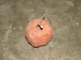 | Description / विवरण | It is a model of a santara, carved out in zig-zag shape, is provided with a long wire for stem. |
