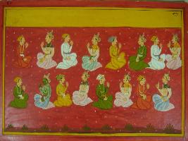 | Description / विवरण | Miniature painting based on Mahabharat - Vana parva. It depicts, different people is talking in both upper and lower panel. |