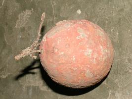 | Description / विवरण | It is a model of a fruit guava, called with its stem and painted in saffron, red. |