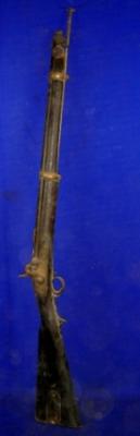 | Description / विवरण | Muzzle loading single barrel topidar carbine with simple wooden butt. |