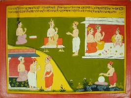 | Description / विवरण | Miniature painting based on Mahabharat - Vana parva depicting that fools have lust, wise men are satisfied. Every thing is mortal and as a washerman washes cloth, in the same way, we should clean our mind and heart. |