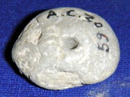 | Description / विवरण | Terracotta bead, plano convex in shape with a perforated hole in the centre. |
