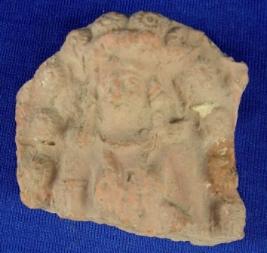 | Description / विवरण | Terracotta female bust, lower part of the body is missing. She is having elaborate head gear with floral designs. She is wearing earrings, necklace. Facial features are rubbed off. |