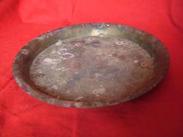 | Description / विवरण | It is a circular plate having inscription at back in Devnagri in Hindi language. It is read as M. Khas . It is devoid of decoration having outcurved edge on border. It is slightly tarnished at back and body at front. |