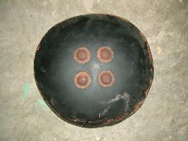 | Description / विवरण | It is a shield, made up of Rhineoceros, leather, is studded with four round bowl shape structure of metal is studded into it. |