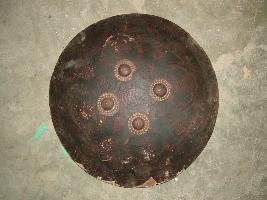 | Description / विवरण | It is a shield, made up of leather, is decorated with floral creepers in medalion all around and having four metal round bowl is studded into it. |