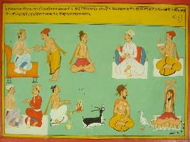 | Description / विवरण | Miniature painting based on Mahabharat - Rajdharma parva depicting different activities of human which would ted him to moksha. He should go to vana forest and do penance. He should make daan to needy person. He should study holy scripture. He should follow the path of nonviolence, speak truth and do not get angry easily. He should perfored yagna and should follow the lead of dharma. |