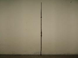 | Description / विवरण | It is a corroded iron and bamboo ballam, having two lion carved on the either side of the hilt in hanging position. The ballam has eitherside blade. |