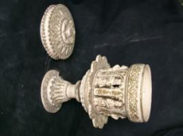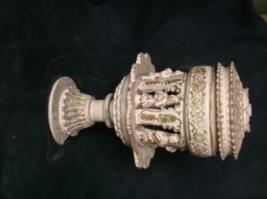 | Description / विवरण | A lamp of cream color on which golden decoration is done. |