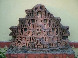 | Description / विवरण | This is a part of an architecture which is decorated with small stupica motif, on top of which a padmasana pose is seen in probably of God Mahesha or Shiva. |