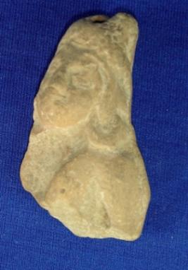 | Description / विवरण | Terracotta female figurine, lower part of the body is missing, hands are also broken. She is wearing round earrings. The eyes, nose and lips are prominent. |