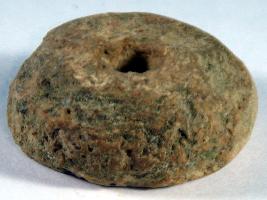 | Description / विवरण | Terracotta bead, plano convex in shape with a perforated hole in the centre. |