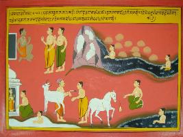 | Description / विवरण | Miniature painting based on Mahabharat - Vana parva. It is told herethat once praying and taking the name of Saraswati is equal to the alms of thousand cows, then bathing in Salukin river is equal to the performing of Ashwamegh three times. |