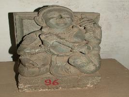 | Description / विवरण | This sculpture depicts a four armed female flying celestial figure holding a bell. Axamala and a musical instrument in her arm and heavily ornamented with necklace, earring, and bangles. |