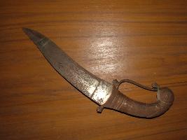 | Description / विवरण | It is a katar of Kota. It is found from Kota Garh Fort . Upper part of katar is pointed sharp . It is one side blade sharp . Upper hilt part is taking linear decoration line wrapped it is round shape. |