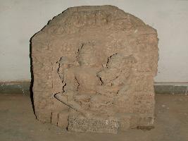 | Description / विवरण | This sculpture depicts Vishnu sitted in lalitasana on his vehicle garuda. On his lap, Laxmi is shown sitted. The four armed god is shown with his attributes, gada, chacra. |