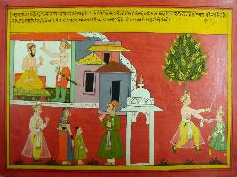 | Description / विवरण | Miniature painting based on Mahabharat - Ashwamegh parva depicting that the king who fears and is greedy and does not obey his grandchild is not king and he will go to hell. |