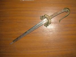 | Description / विवरण | It is a small chhuri dragger with one sided blade, is decorated with vulture inscribed over the blade. It has wooden hilt. |