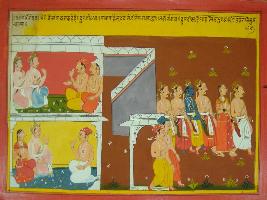 | Description / विवरण | Miniature painting based on Mahabharat - Vana parva. The painting depicts Durudhana followed by two nobles while in the left side Pandavas are including Draupadi cominn out to vana from Hastinapur. |