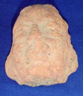 | Description / विवरण | Terracotta human head having hair knot over its head. The features are slightly rubbed out. |