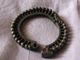 | Description / विवरण | It is a bracelet Gokharoo with circular dots, attached to the main portion, is provided by a hinge joint opener to fit into the waist. |