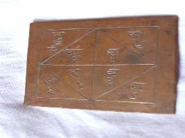 | Description / विवरण | It is a carved copper plate having yantra, carved with Rhombus design with Jagada-Guru written in symbolic form at four corner and Krishnam Devam, devoted to Lord Krishna which was personified as Teacher of the world. |