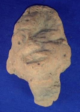 | Description / विवरण | Terracotta human head, left eye is rubbed off. Nose and lips are prominent with incised line. |