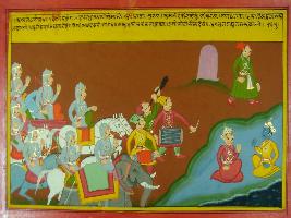 | Description / विवरण | Miniature painting based on Mahabharat - Ashwamegh parva depicting Hansadhwaja moving ahead with huge army and with warriors like Sudhana, Saurabh, Sumati, Virketu, Tivrarath, Satdhanwa etc. and Arjun and Pradyuman are watching them. |