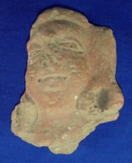 | Description / विवरण | Terracotta human head. The right side of the face is broken and eyes, nose and lips are prominent. |