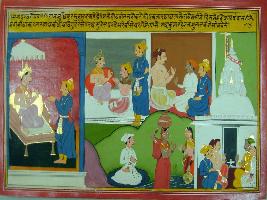 | Description / विवरण | Miniature painting based on Mahabharat - Sabha parva depicting Narad is talking to Yudhisthir and telling him about the ways to deal with Sabha. |