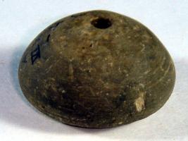 | Description / विवरण | Terracotta bead, plano convex in shape with a perforated hole in it. |