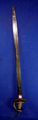 | Description / विवरण | Katti Sword having straight blade made of faulad with water marks and embossed design on the edges. The iron hilt has thick knuckle guard and the koft work is almost completely rubbed out. |