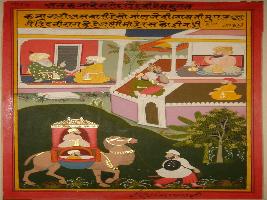 | Description / विवरण | Miniature painting based on Mullah-do-Piyaja depicting that how Mughals have ruled on Hindustan. They are commenting on the Mughals as their royal precession goes by. |