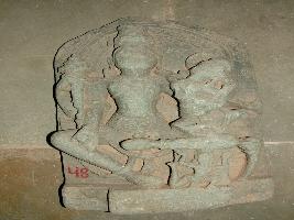 | Description / विवरण | This is a defaced sculpture of Vishnu with Laxmi. Vishnu is holding mace, conch, disc and fourth hand is broken. krit mukut and in sukhasan pose. Laxmi is seated on left thigh. Garuda is depicted in the lower portion. |