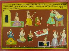 | Description / विवरण | Miniature painting based on Mahabharat - Ashwamegh parva depicting Sudhana telling the story of Parasurama to the prince who killed his mother with his Parashu. |